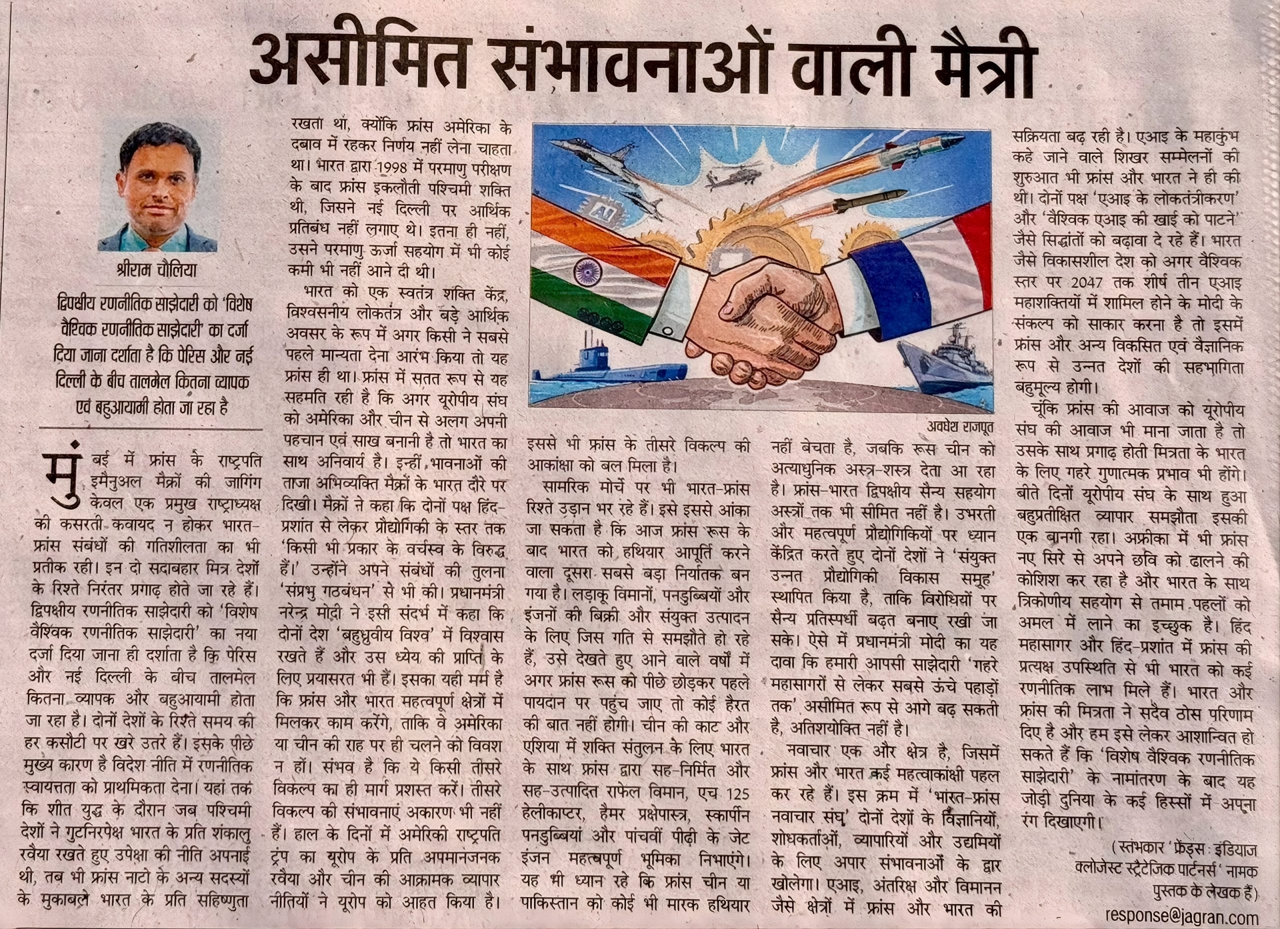 असीमित संभावनाओं वाली मैत्री- दैनिक जागरण, फरवरी १९, २०२६