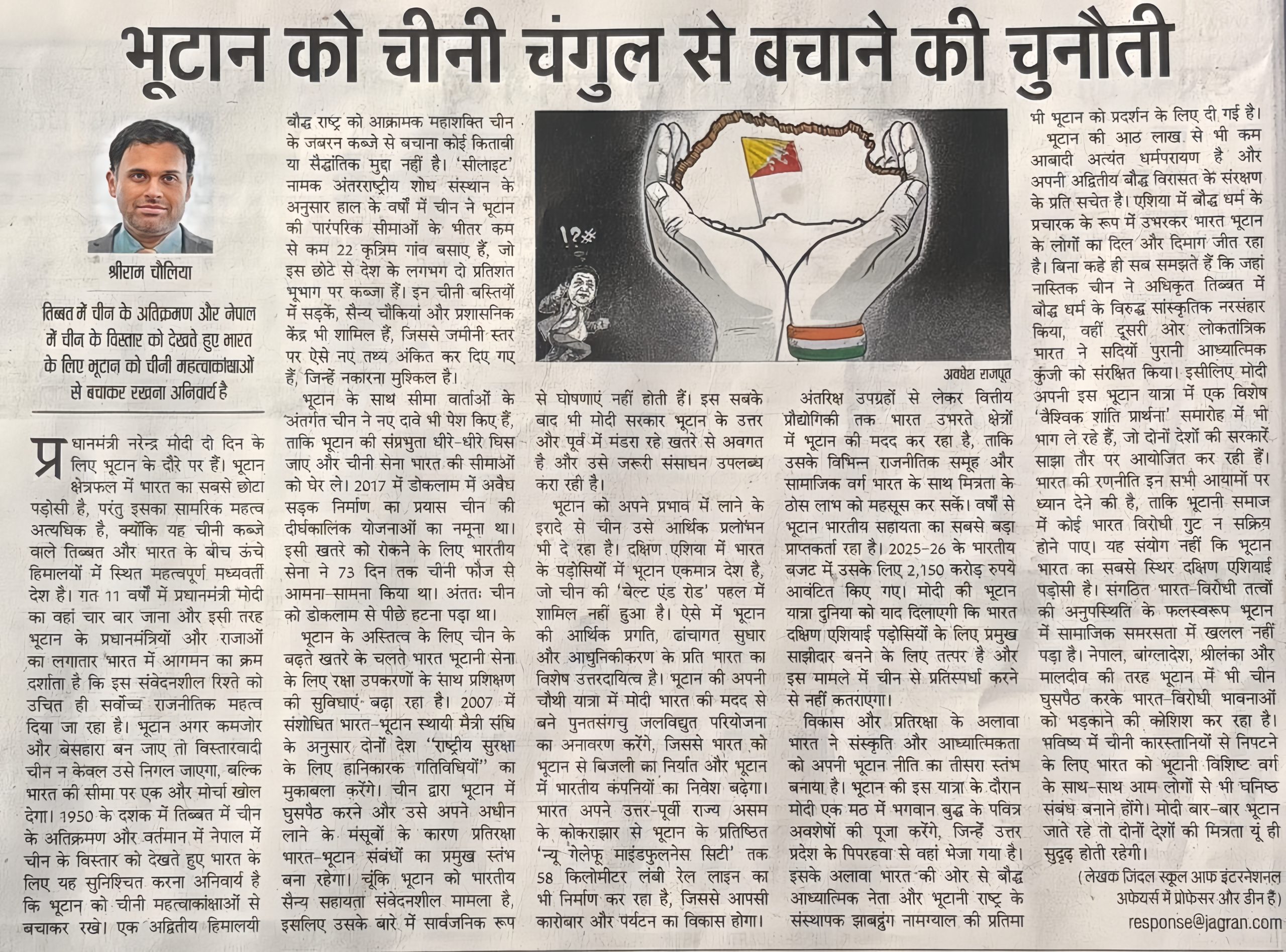 भूटान को चीनी चंगुल से बचाने की चुनौती- दैनिक जागरण, नवम्बर ११, २०२५