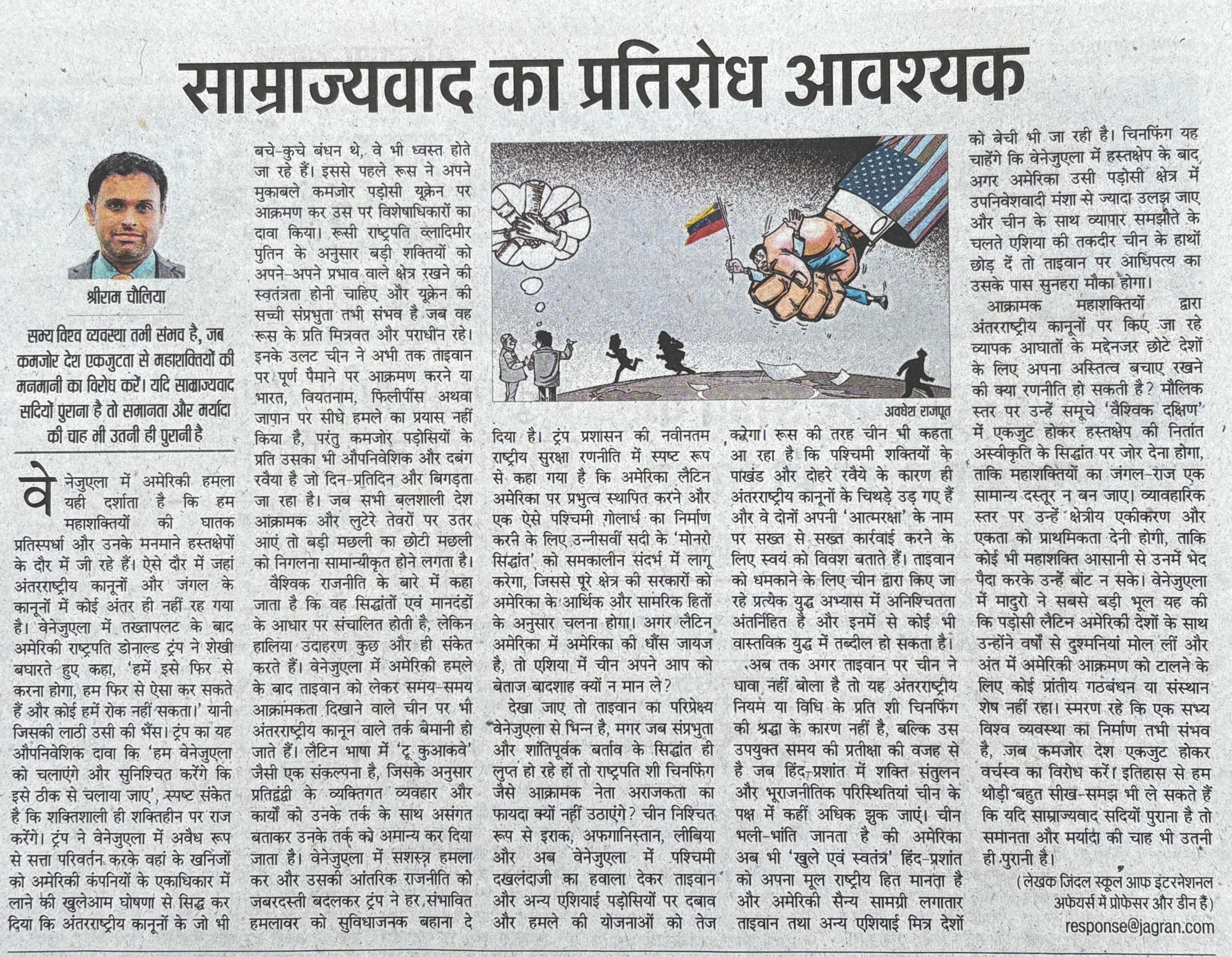 साम्राज्यवाद का प्रतिरोध आवश्यक- दैनिक जागरण, जनवरी ६, २०२६