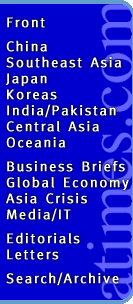 Front | China | Southeast Asia | Japan | Koreas | India/Pakistan | Central Asia/Russia | Oceania Business Briefs | Global Economy | Asian Crisis | Media/IT | Editorials | Letters | Search/Archive |